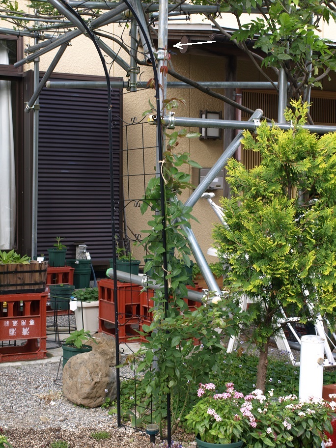 すぐ後ろは藤棚です。此処へ誘引すれば5mも怖くないぞ。