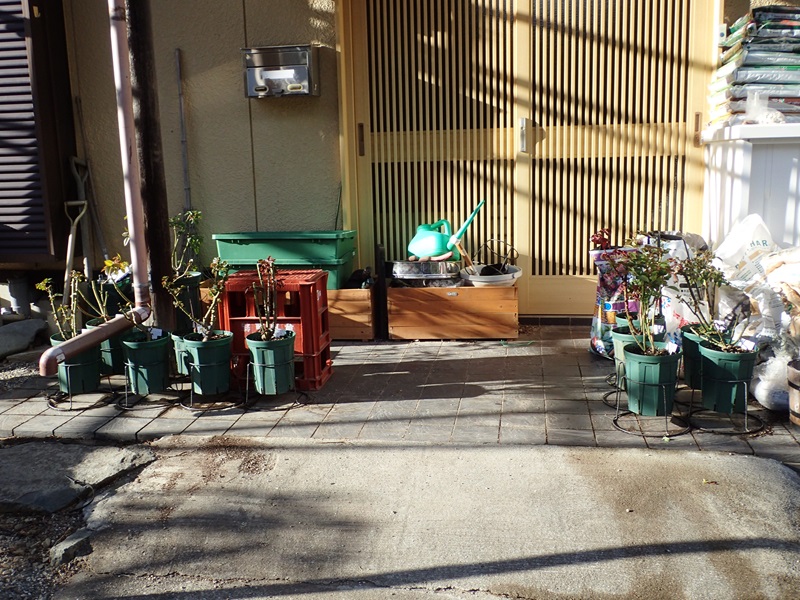 薔薇の苗木が12鉢。