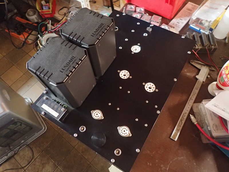 作業台から降ろされたパワーアンプ。写真を見て、アッ、自分のだ。って気付いた方がいると思います。