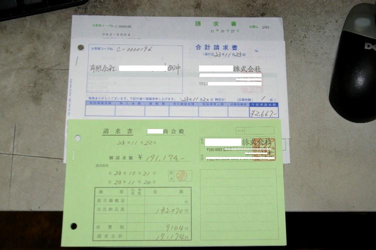 入荷したダンボールの蓋を開けると請求書が3枚も・・・・。