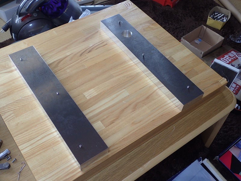 組み立て台の上に乗せた足の部分。左右に一本ずつ前後に渡ります。