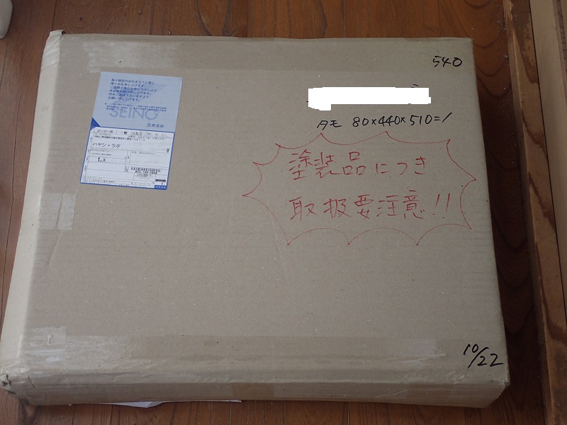 梱包を解くと、傷をつける恐れが有るので、組み立て直前に解きます。