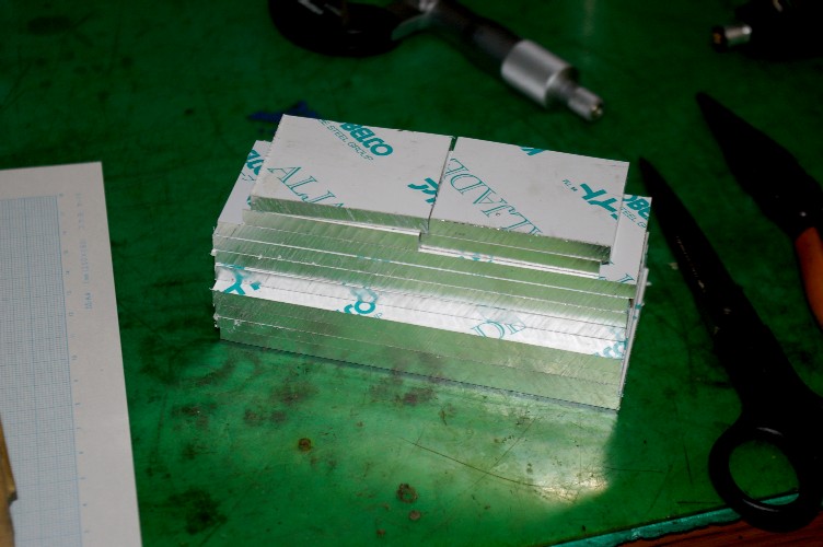 写真のアルミ材。丁度1週間前に購入。直ぐに切削開始。
