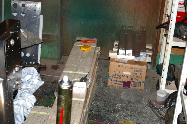 このラックの組み立ては全てネジ止めに成っています。早い話此処で組み上げての納品は重量の面で不可能です(汗)。