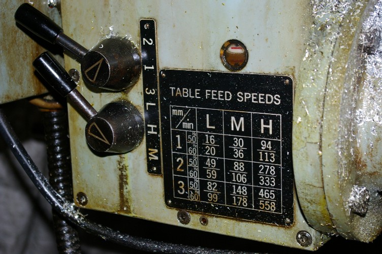 この写真は、ベッドの左右送りの速度を決めるレバーです。