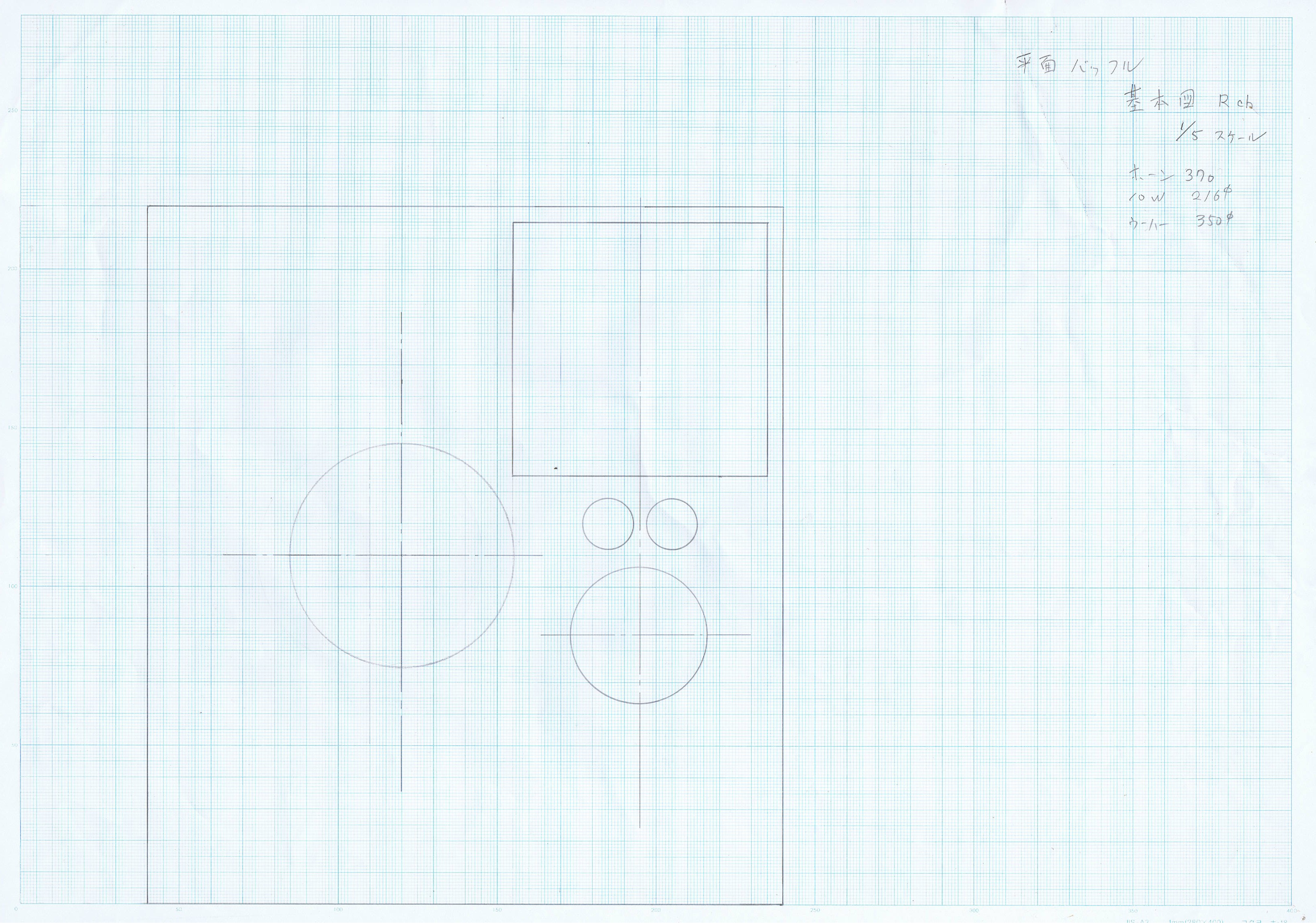 1年以上前に書いたバッフルの図面。馴染みの方には何処に何のユニットが付くかは一目瞭然。