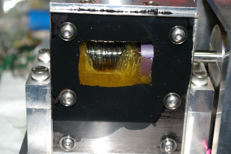 アクリルの窓の右端に見える、紫色のパーツが対策品です。