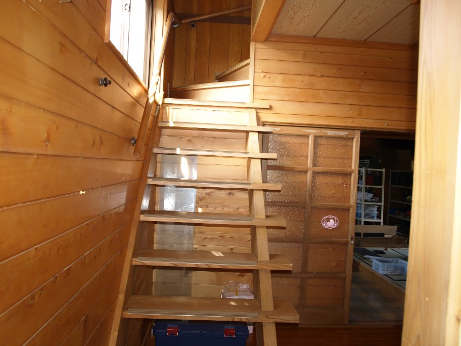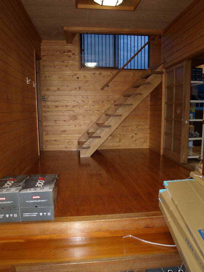 普段使わない部品や大物は二階に上げておきたい。