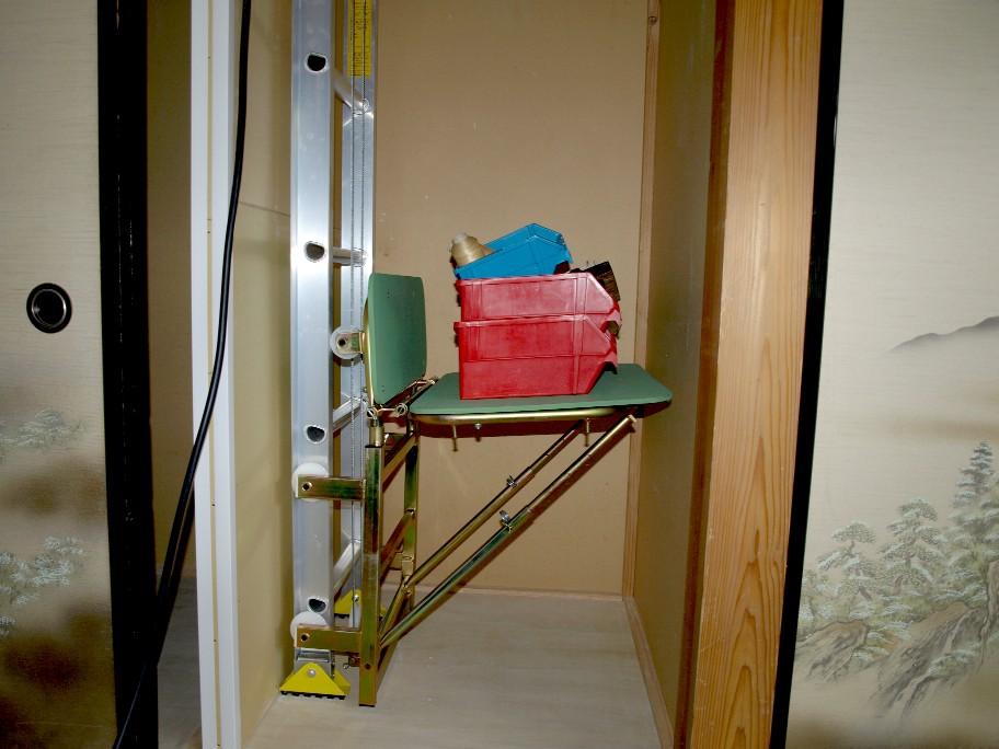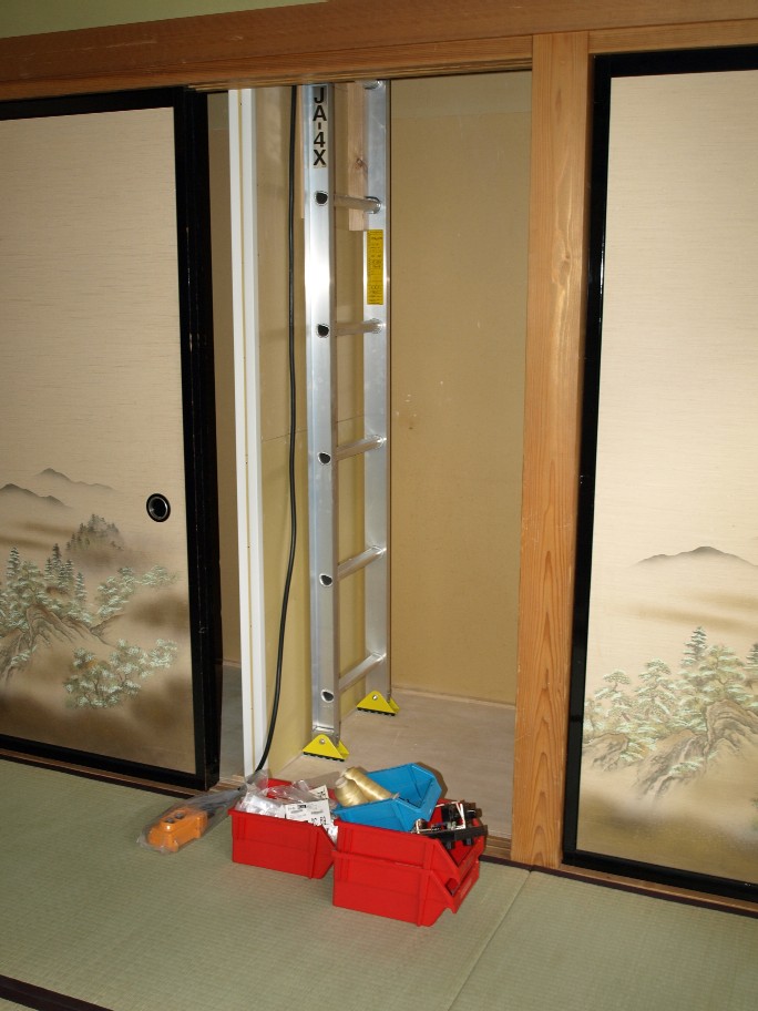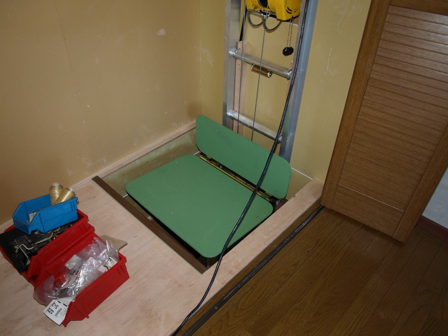 6畳の部屋の押入れと、二階の8畳の部屋の押入れがピッタリ上下に重なっているので、此処に荷物専用の昇降機を押し入れ内に取り付けます。