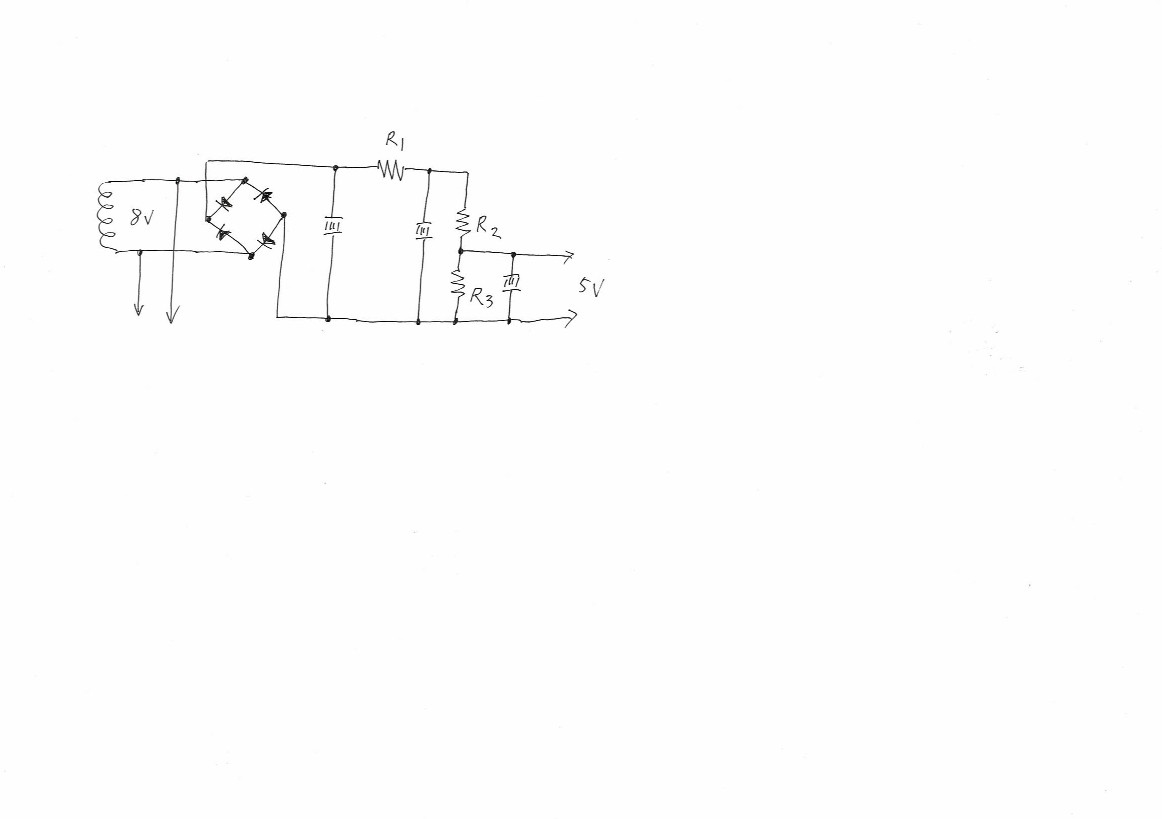 今回、トランスから何ボルト出ているかは問題じゃなく、最終電圧の5Vをキープする事。
