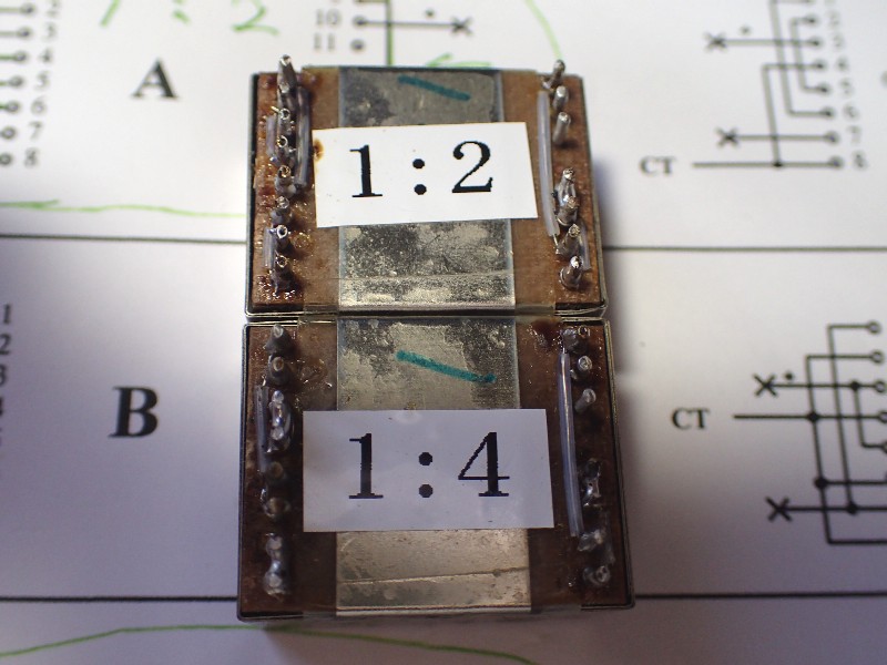 1:1って書いて有るのが見えますね。当時の僕(10数年前)は1:1に拘っていました。確かに1:1は良いトランスを作り易い。