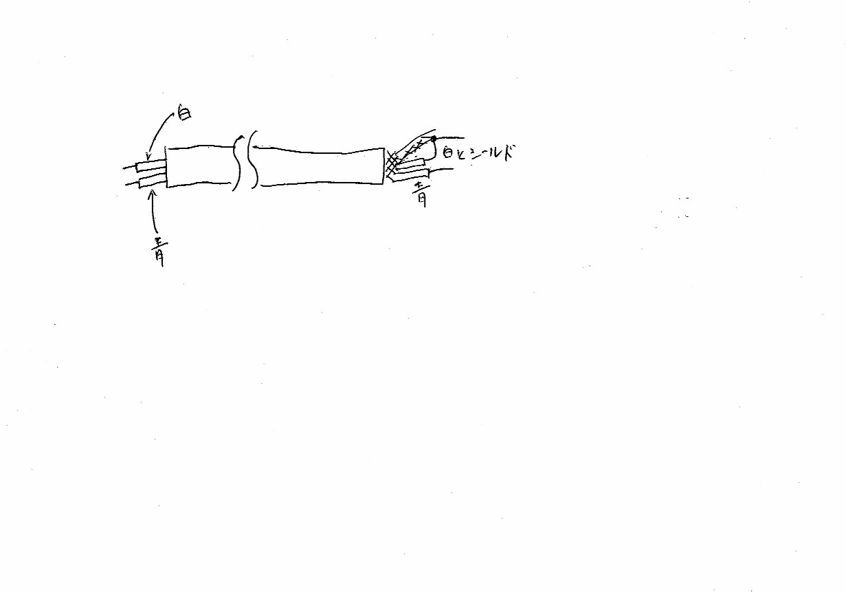 で、大事なのはシールド線(周りの編み線)を片側は繋ぎません(此れが肝)。