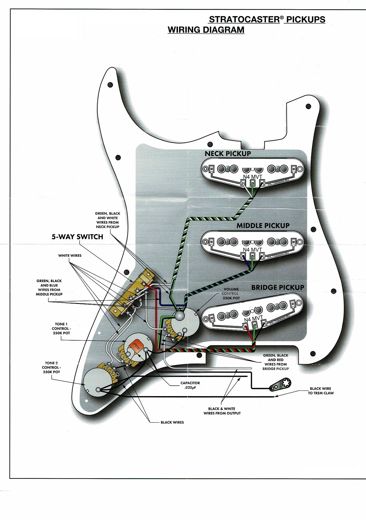 更に、弦アース(ストラトの場合はスプリングホルダー)、ボディアース(導電塗料)、ピックガードの裏面アルミ箔、からも、単独でジャックへ配線します。