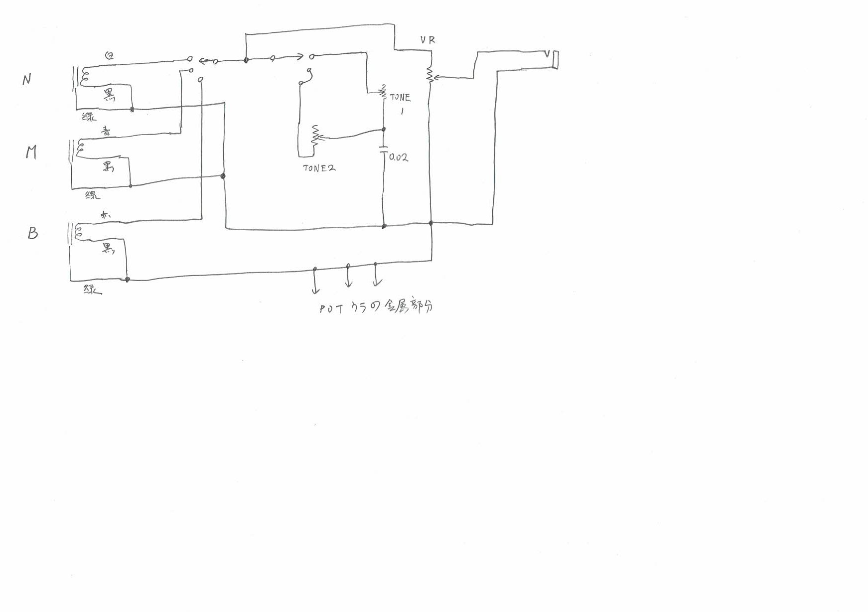 トーン回路が二つパラレルに入るので、柔らかい音と言えば褒め言葉ですけど、高域の甘い音(正確に言うと高域カット)に成るんですけどね。