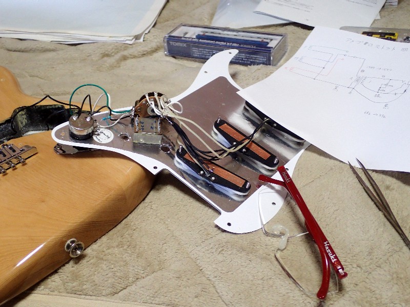 ヤバイのがジャパンストラト。HSH配置のピックアップ。