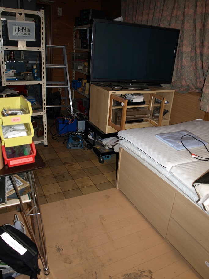 片側に寄せるだけ寄せて通路を作る。それでも邪魔なものは試聴室に移動(汗)。