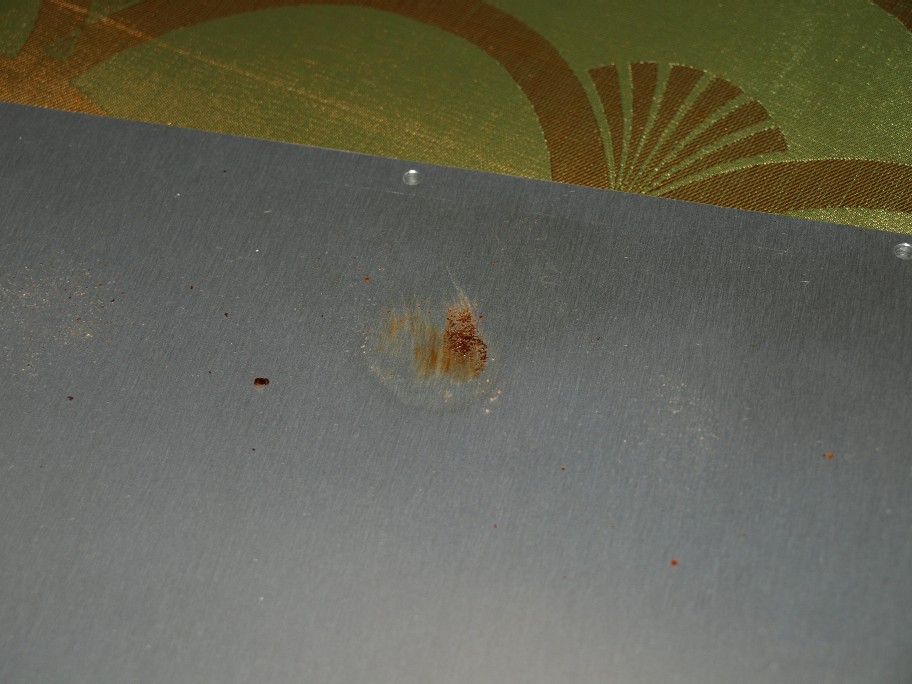 漏れた液には腐食性が有りますので、鉄板のシャシでしたら錆が発生していた筈。