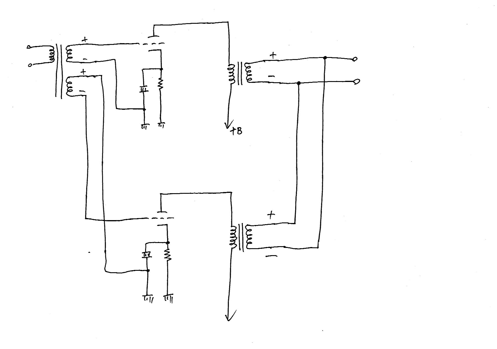 このアンプの入力を、トランスを使い逆相の入力にするんですね。