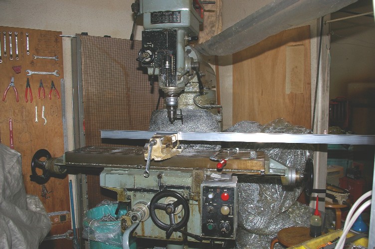 何か長いアルミのアングルをフライスにセットし、始まり始まり。