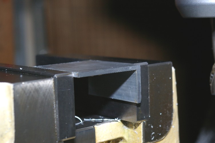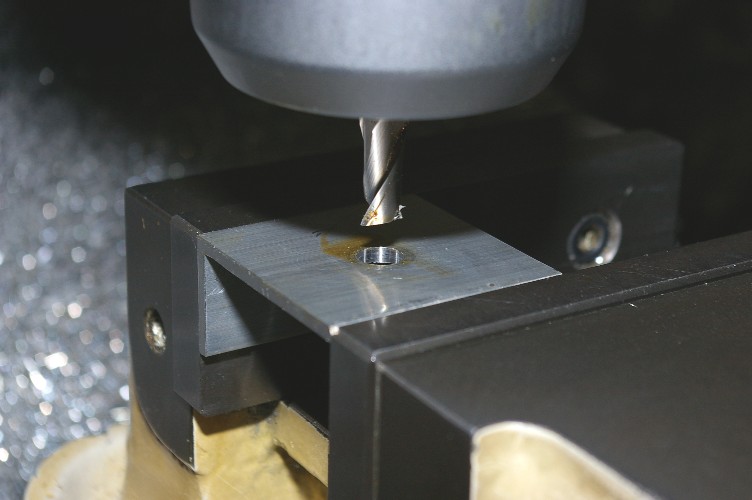 広い面に9mmの穴をあけます。ドリルよりも穴の内面が綺麗に仕上がるエンドミル加工。見えなくなってしまうのに、拘りです(笑)。