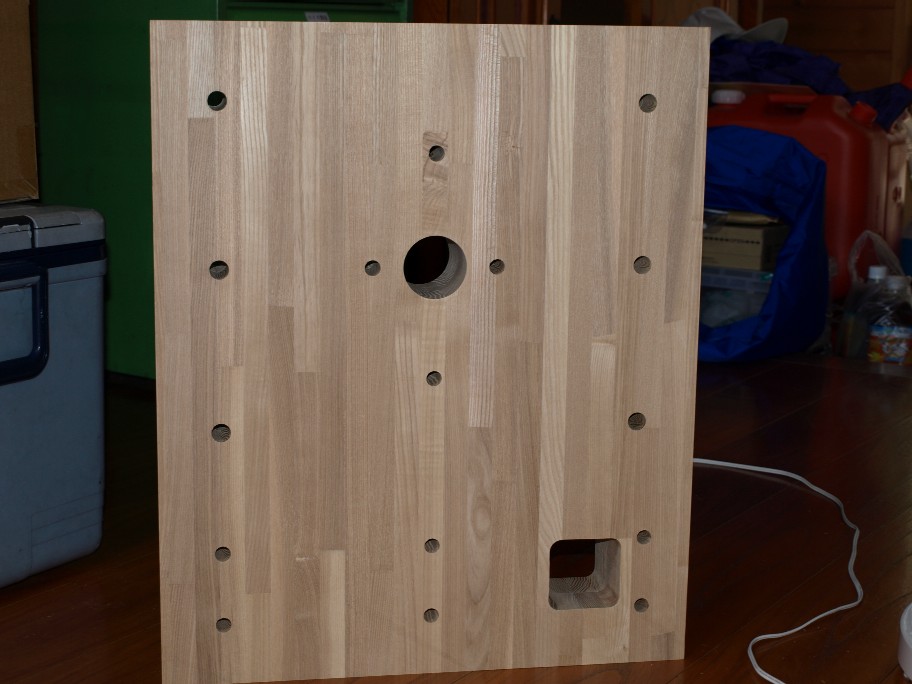 今回は思い切って80mmの板で頼んだんだけど、ヤハリ木工場でも80mmの穴あけは無理。