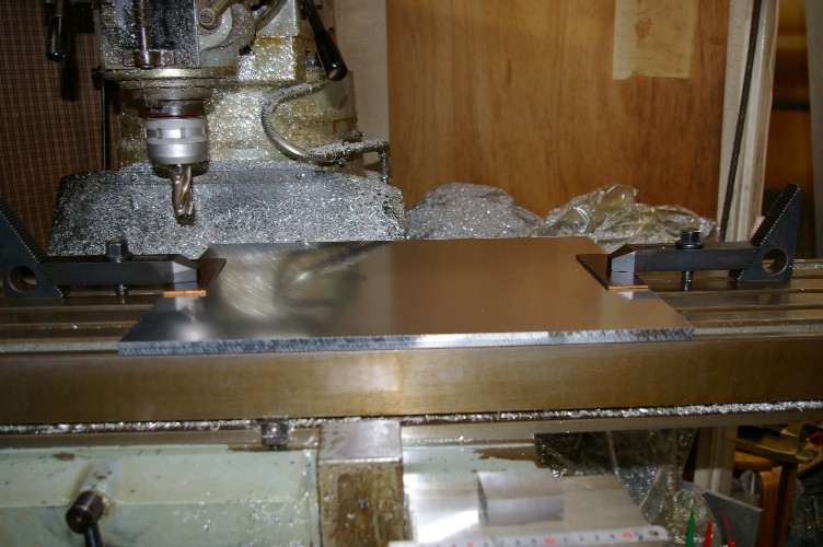 此処にアルミ板の端を合わせます。平面をシッカリと出した金属をあてがい、取り付け位置を合わせます。