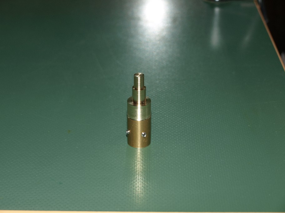 再び鉄の丸棒からモーターシャフトとドンピシャリの径を削りだし、此処へ荒削りのプーリーを取り付けるのです。
