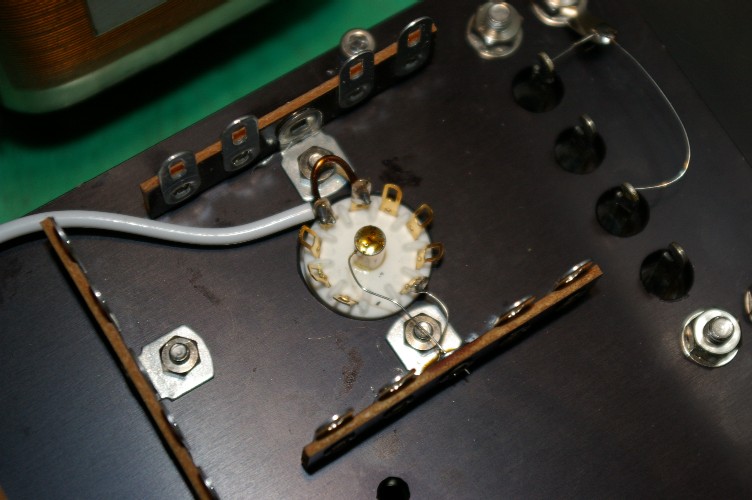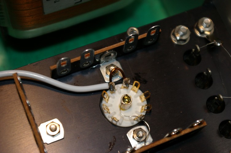 ヒーター端子と金属ピン。どちらもシャシに落とすのだからと、何も考えないと上の写真の配線に。