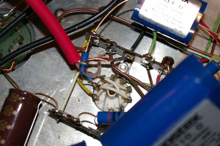 真空管ソケットへはホット(青い線)を直にグリッドへ。