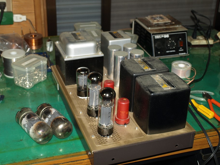 お客様の好みを考えると6550よりもEL34の方が喜ばれるのも判っているので、迷わずEL34へ変更(勿論バイアス抵抗は換えましたし1番ピンの配線も変えました)。