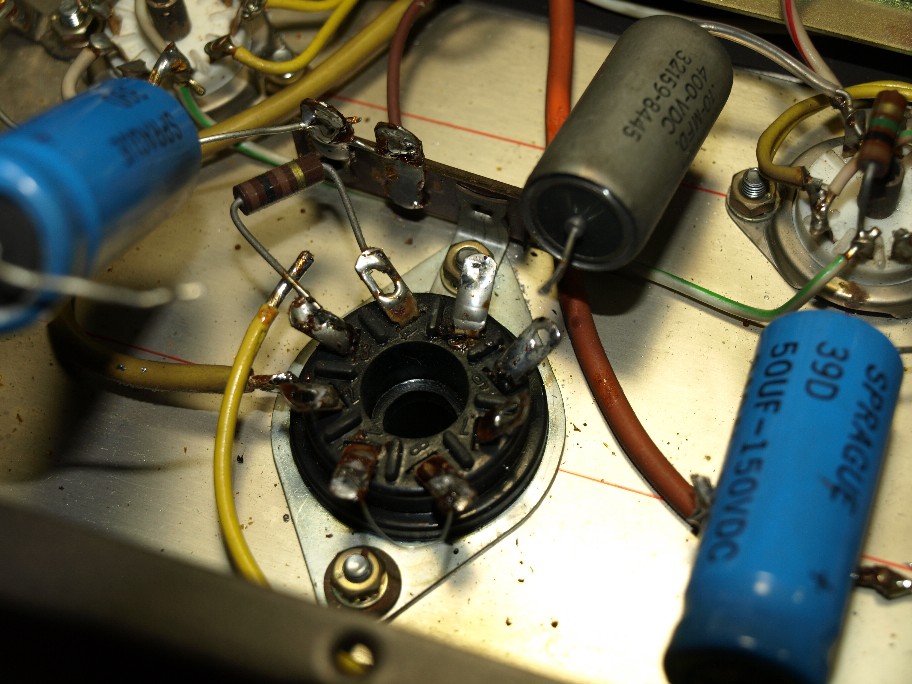 更に此れだけの時間を経過したアンプでは必ず交換品。真空管ソケットです。マッキン、マランツ辺りでも必須なんだけどやっている業者少ないですよね。
