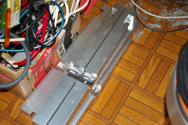 店の中はアルミの角材でいっぱい。