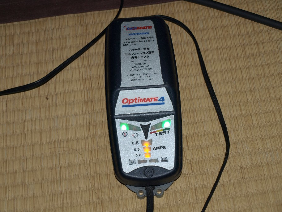 弱ったバッテリーの再生と寿命の判断にオプチメイトを1台。
