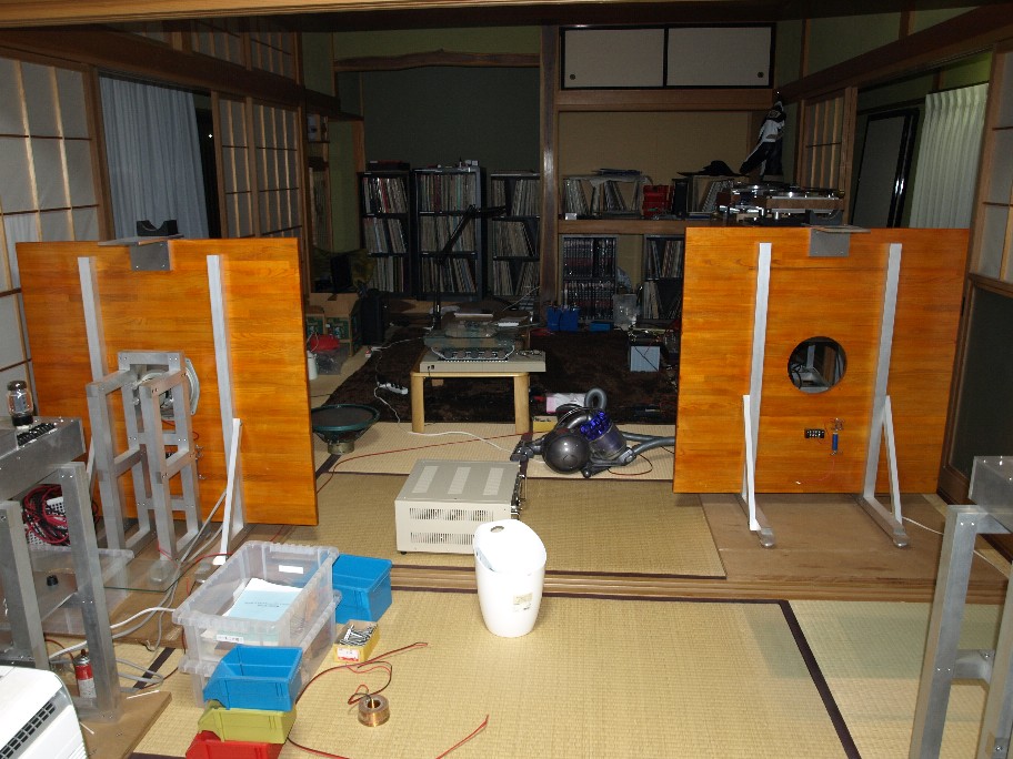 その位置に写真右側のスピーカーを(バッフルを)移動させました。