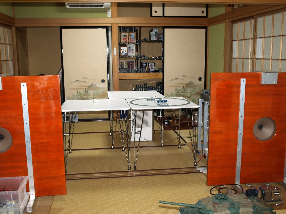 スピーカーの後ろにテーブルが3台設置されました。最終的には6台の予定。