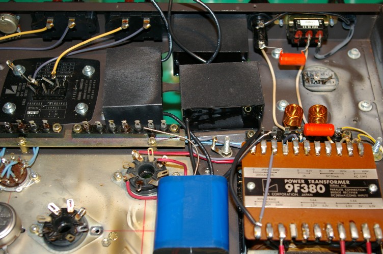 エーーーーー。昔のアンプの中を見るって恥ずかしいですね。今だったら絶対にやらない配線が・・・・・・(汗)。