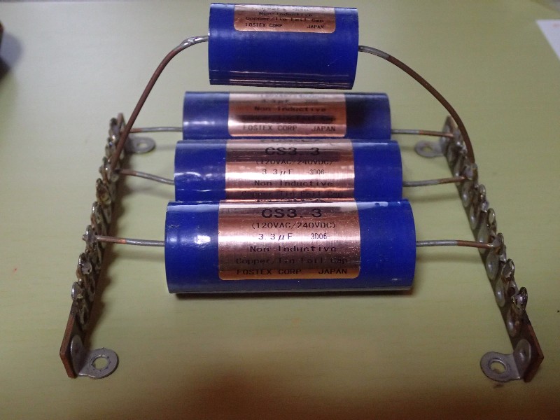 フォステクスのCSコンデンサー。容量は3,3μ。