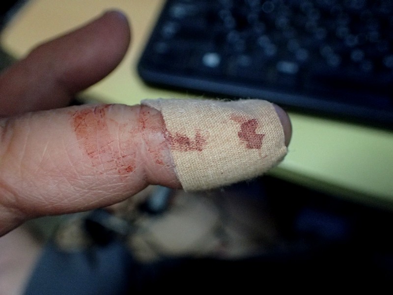 作業再開。オイオイ、出血が止まらない。床にポタポタと落ちる。