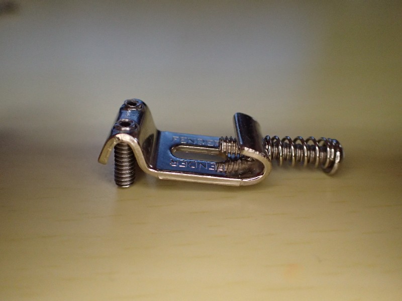 此処の部分で弦を押さえ、振動をボディ(正しくはブリッジ、ストラトの場合はトレモロユニット、其処からボディ)に伝える大切なパーツです。