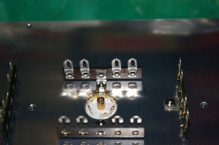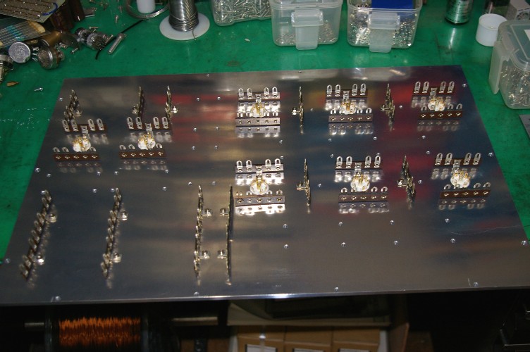 只今製作中のプリアンプ。天板に付く小物パーツが付け終わりました。