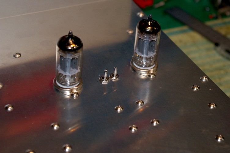 真空管の間のSW。このSWをONにしますと、出力トランスのセンターがアースされ、バランス出力に成ります。