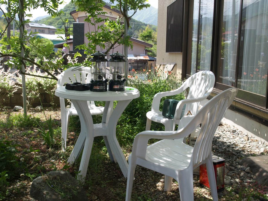 で、昨夜(と言うか夕方)。晩酌途中で庭で飲みたくなった。