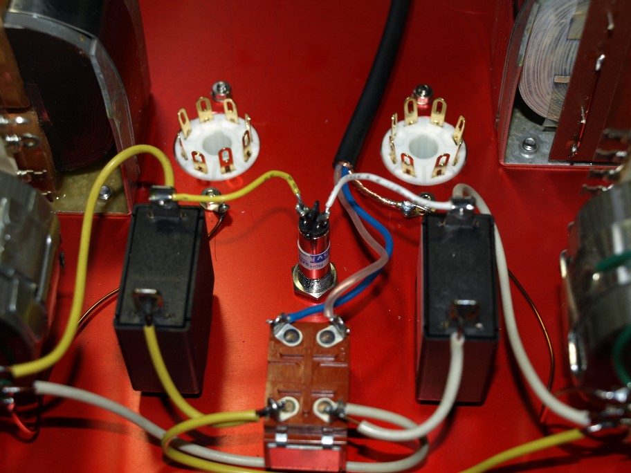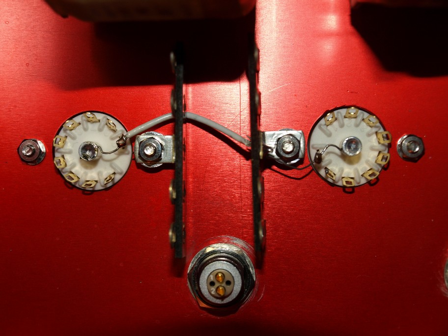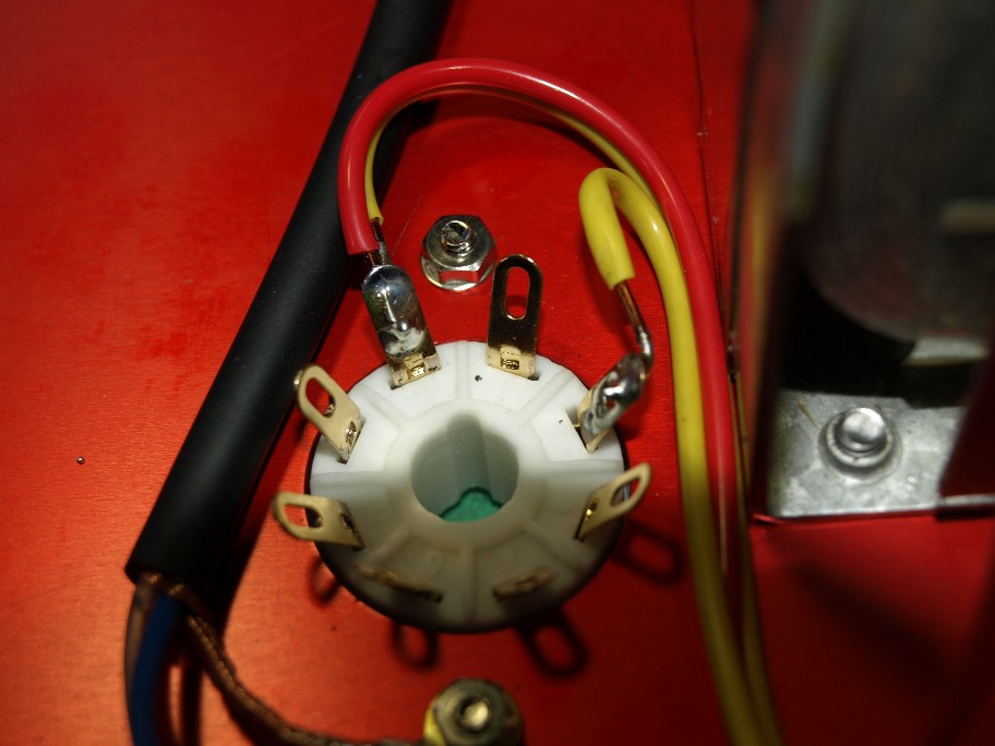 右側の球は横のラグの中間端子(シャシに落ちている)へ直配線。