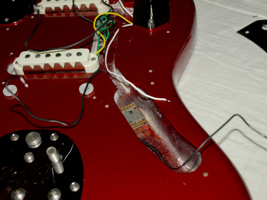 写真の位置に2個入れるのは出来るんですけど、フロントピックアップの配線を可也遠回りする様なのです。