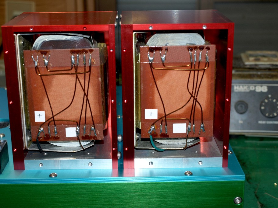 非分解ケースですと、ケースごとシャシからトランスを外し、ケースからトランスを抜き取り、それからの配線のし直し。