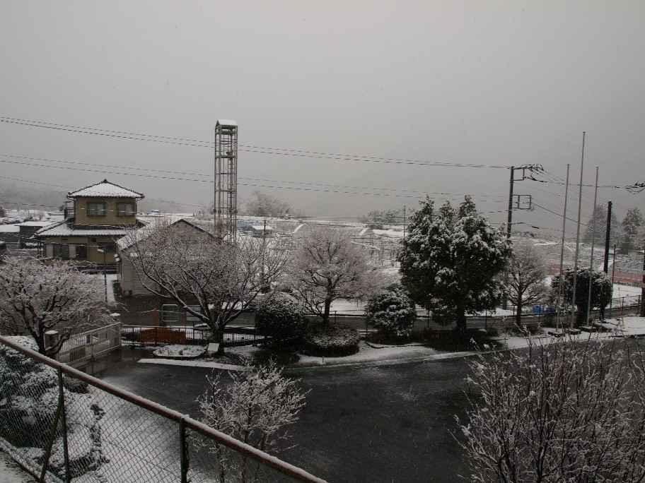 地面はびしょびしょに濡れているのに、積もりだしました。