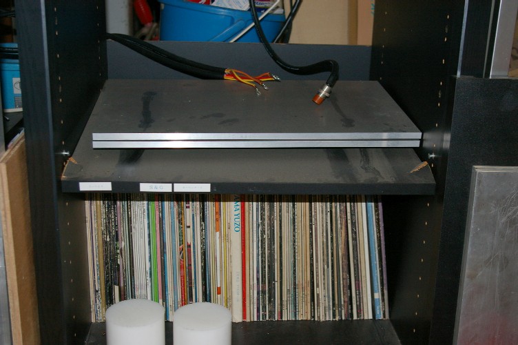 結局。棚板を調整して床に出た侭のレコードを入れ、電源はオイロダインのアンプを置くラックに納めて・・・・。