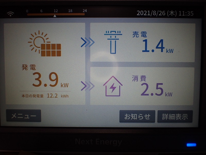 つまり余っています。そのあまり分の1,4kwは東電へ売却。