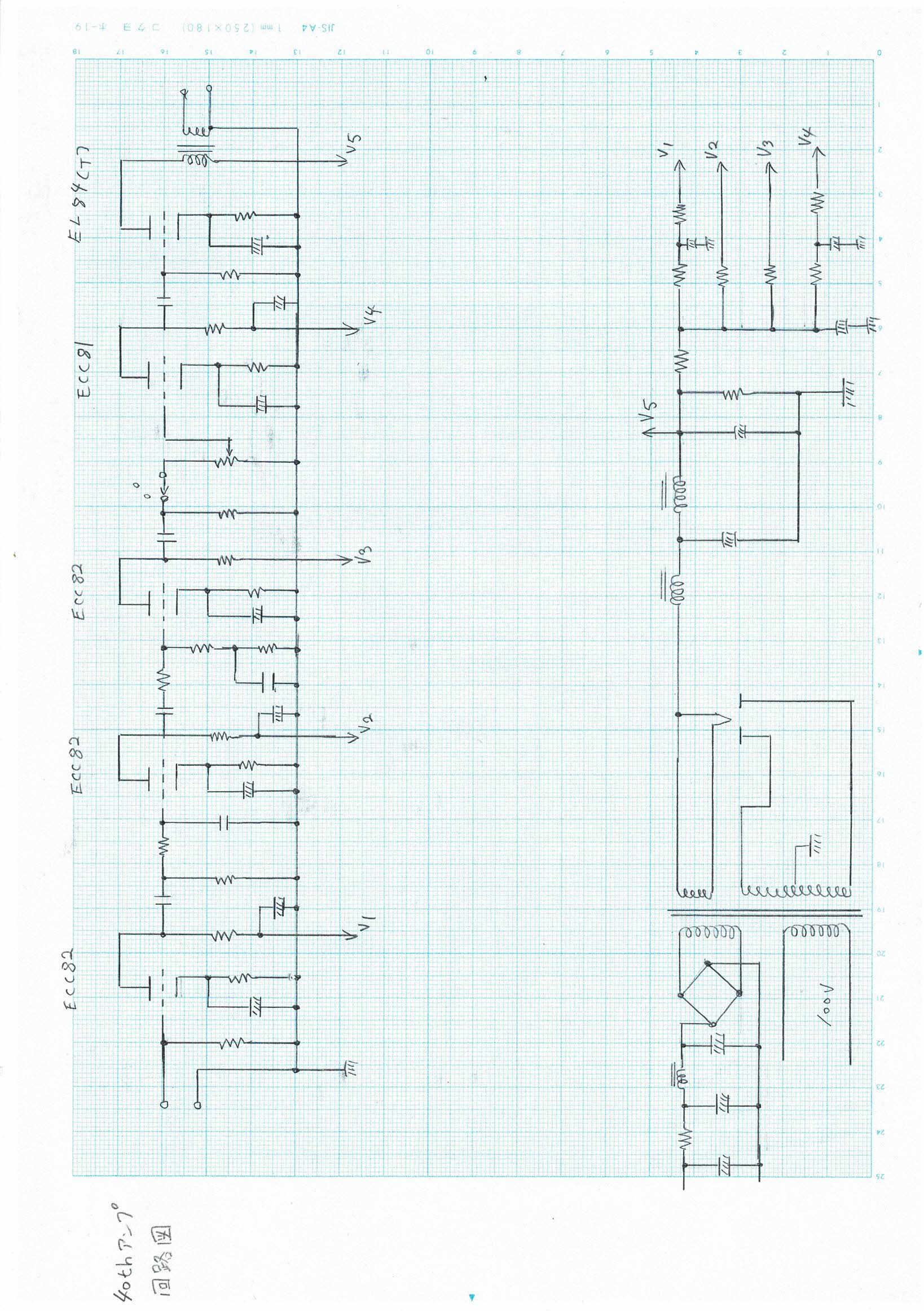 パワー管の入力感度が高いので、プリ部のフラット段は省略しました。チョイ足りないゲインはドライブ段にミューの高い81を使って辻褄を合わせています。