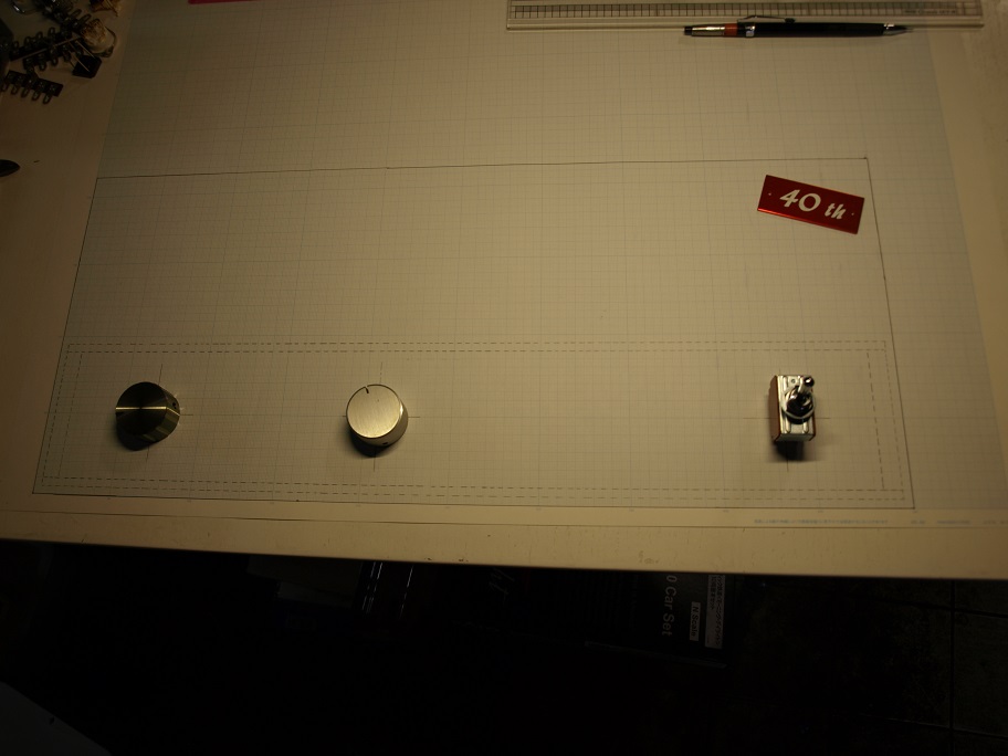 操作するのは電源SW、入力セレクター、VRの三個ですし、穴の位置は内部の都合で決められています。